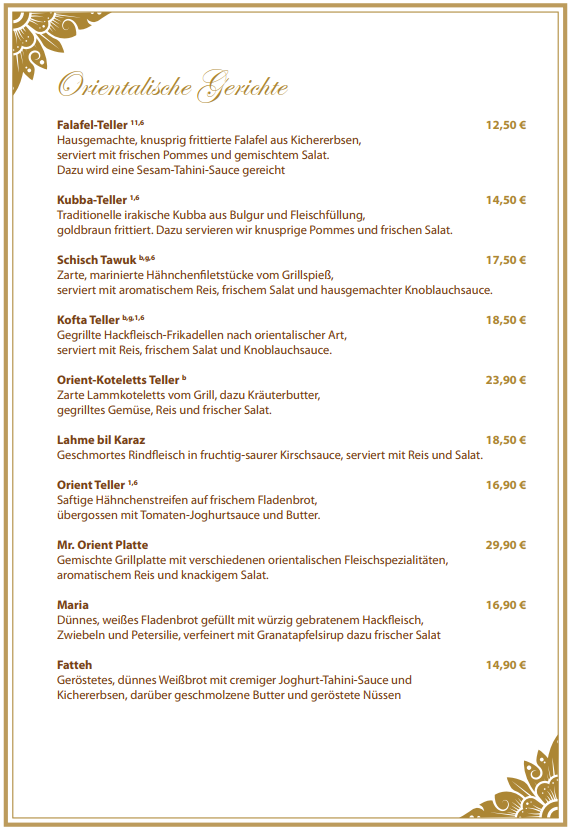 Jetzt wird es orientalisch: Neue Speisekarte mit 16 orientalischen Spezialitäten bei Mr. Orient.