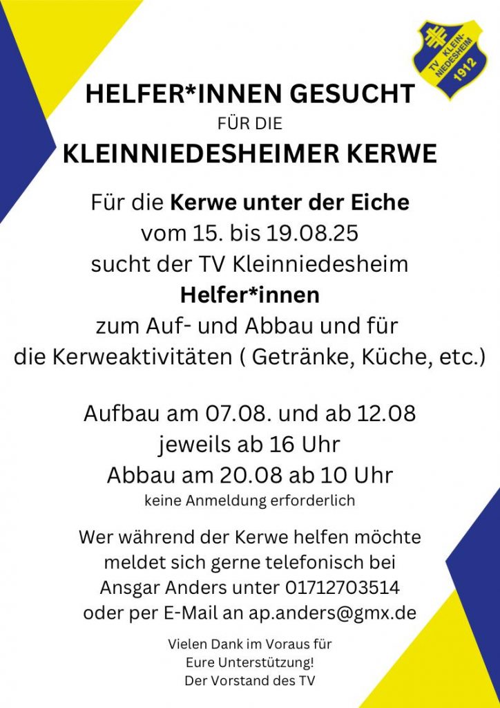 Auch im zweiten Jahr nach DJ Dieter wird es „unter der Eiche“ beim TV Kleinnniedesheim wieder einen Kerwe Warm-Up mit Musik von DJ Sapphire geben, der langsam zu einer neuen Kerwe-Tradition wird. Am Freitag, den 15. August, startet das Fest um 18:30 Uhr mit leckeren Cocktails und einer Vorstellung der Hip-Hop Tanzgruppe „Pure Beats“.